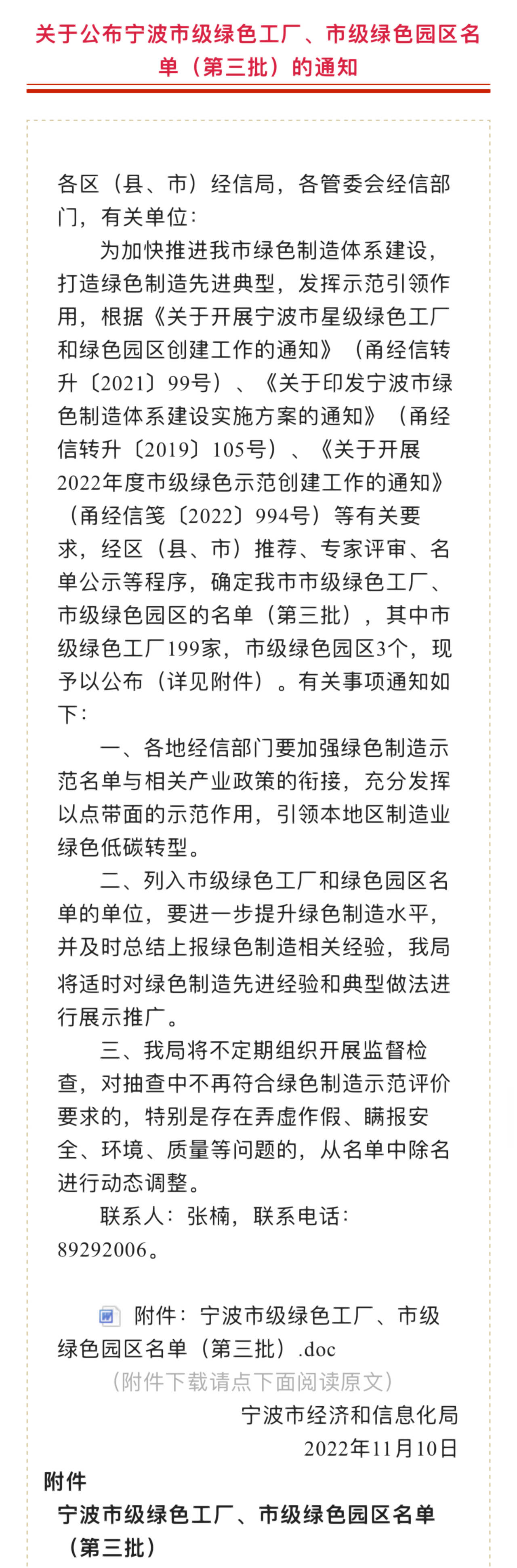 2022年11月18日,寧波市發布了2022年度寧波市級綠色工廠、市級綠色園區名單,對符合“綠色發展”倡導的企業予以認定,青湖成功入選“綠色工廠”,標志著公司構建低耗高效、持續環保的綠色制造體系邁上新臺階。