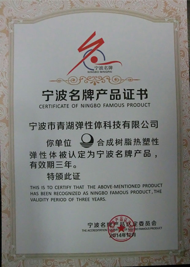 2016年2月26日,羊年春節剛剛結束,青湖雙喜臨門。由寧波名牌產品認定委員會評選的“2015年寧波名牌”正式出爐,“青湖”牌合成樹脂熱塑性彈性體位列其中。同時,公司也收到了寧波市計量測試學會頒發的“計量檢測能力確認合格證書”,市計量測試學會對公司在產品質量、經營管理、節能降耗等方面的計量檢測能力給予了肯定。